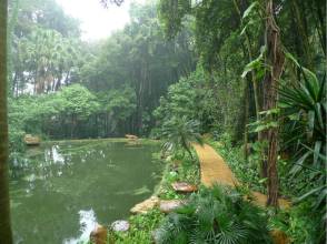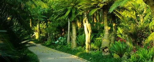 雨林大觀于1998年建成,占地500多畝,物種繁多,植被層疊,擁有各類植物200多科2500多種300多萬株,這里有獨具雨林特征的人面子、桄榔、聚果榕等特色植物和望天樹、桫欏、降香黃檀等180多種國家級重點保護植物。